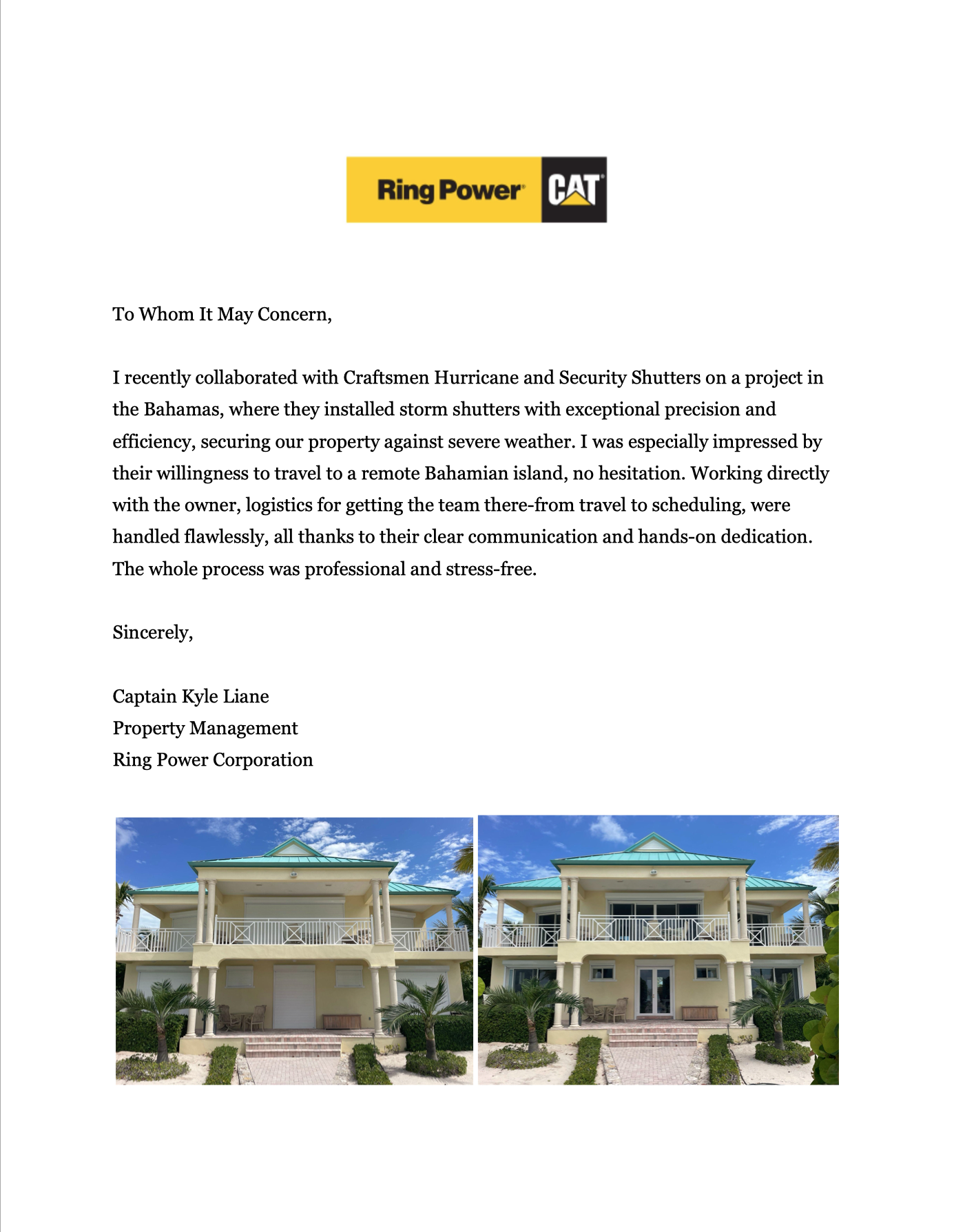 With over 25 years in the shutter business and extensive experience working with many of the top shutter companies in our area, we bring a wealth of industry knowledge to every project. From New York to the Florida Keys, including the Bahamas, we've installed shutters for a wide range of customers. Now, we’re dedicated to using this expertise to provide our neighbors with the storm protection and security they need, paired with exceptional service and fair pricing.